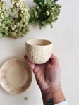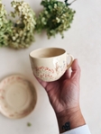 Ніжне дівоче горнятко з квітами та плетеною в косичку рочкою. Ручний розпис.