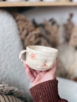 Ніжне дівоче горнятко з квітами та плетеною в косичку рочкою. Ручний розписДля чаю та кави
