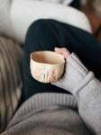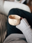 Має зелену мідну точку всередині. Фото 3Бежеве горнятко з різнокольоровою травичкоюДружить і з гарячими і холодними напоями.Можна мити в посудомийці, але не раджу. Посудомийна машина швидше зношує кераміку ручної роботи.
